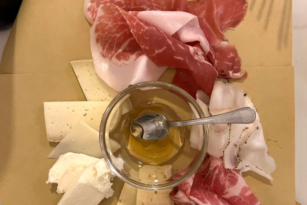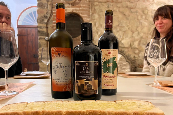 Degustazione di olio, salumi, formaggi e miele di produzione locale, accompagnati dai vini tipici Veruccese e Vernaccina, nelle grotte dell’Oste del Castello.